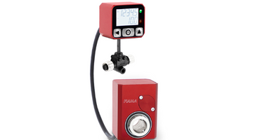 O valor alvo é enviado para a unidade por meio de uma interface serial do PLC, permitindo a troca manual de formato pelo operador usando um volante.