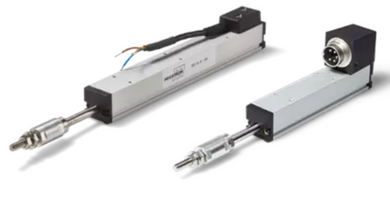 Design industrial compacto Haste de pressão e juntas esféricas guiadas frontais Potenciômetro linear de longa vida útil e alta precisão com resolução quase infinita. Comprimentos de medição de 25 mm a 200 mm